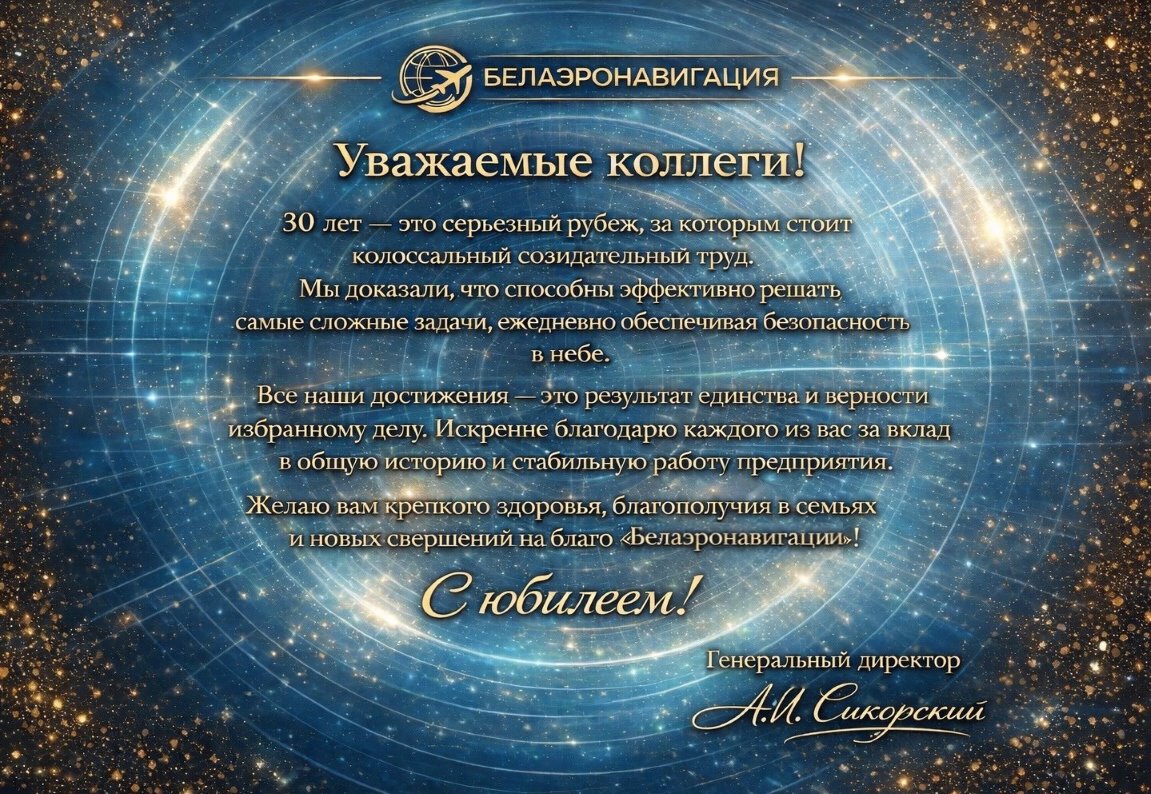 Желаю крепкого здоровья, оптимизма, благополучия и дальнейших трудовых успехов на благо гражданской авиации Республики Беларусь!